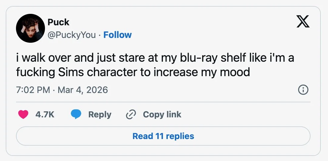 Annoyance at the Jim Carrey debate (?). I didn’t want to get into this because it’s so dumb, but multiple people seem to think I should care and have brought it to my attention and I think I can loudly say that TikTok really is full of morons. No, that’s not a clone. I feel dumber for even writing out that last sentence. The man has buckets of money and it’s likely bad plastic surgery and/or literal age. Or he’s suffering from something and it’s not our business. I’m the last person to defend a millionaire but this is nonsense. If you strongly believe that he's a clone: please god, put your phone down and go read a book.